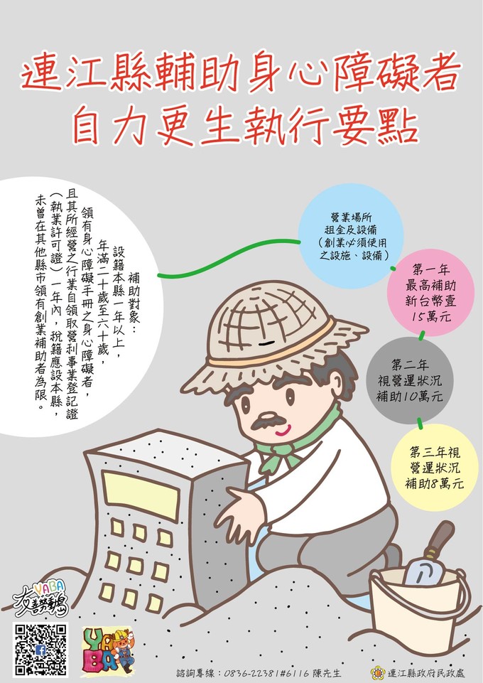 連江縣輔助身心障礙者自力更生執行要點: