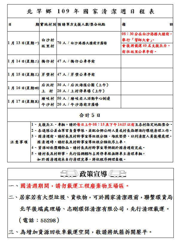 北竿鄉國清週暨春節期間垃圾清運宣導