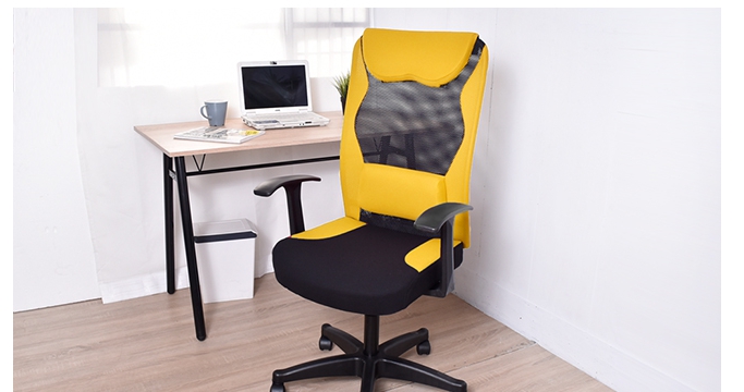 防撥水舒適人體工學電腦椅 -黃色1張(9成新)