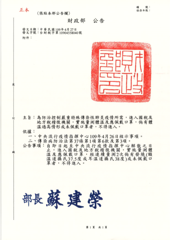 進入國稅局及財政稅務局應配戴口罩