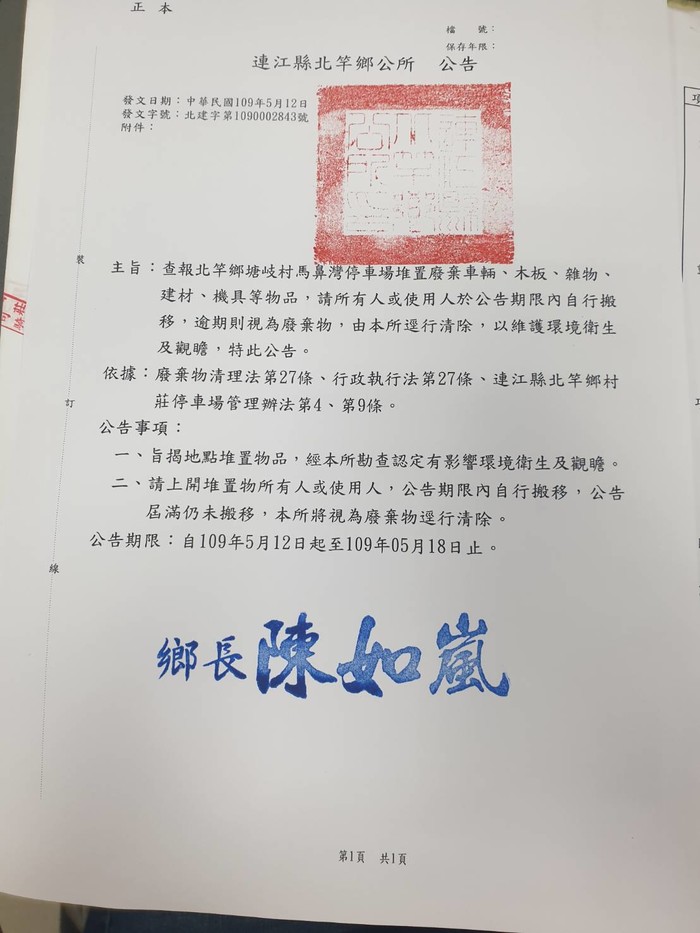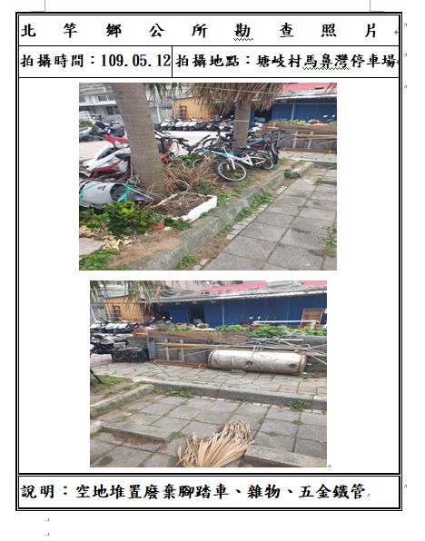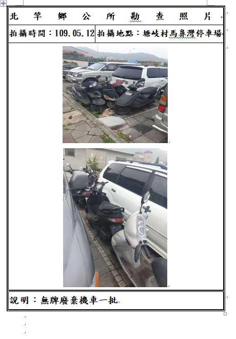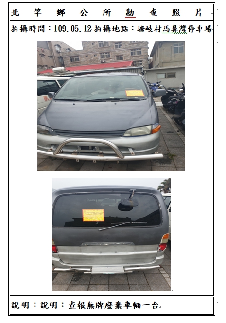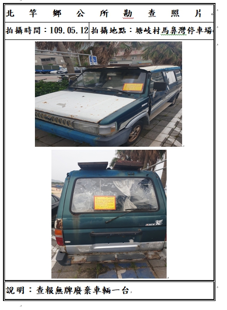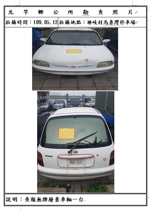 查報馬鼻灣停車場無牌車輛、廢棄物一批