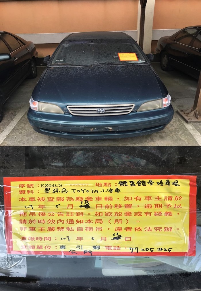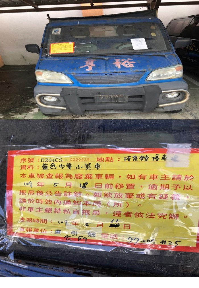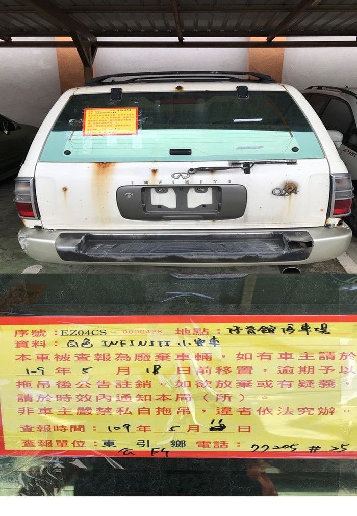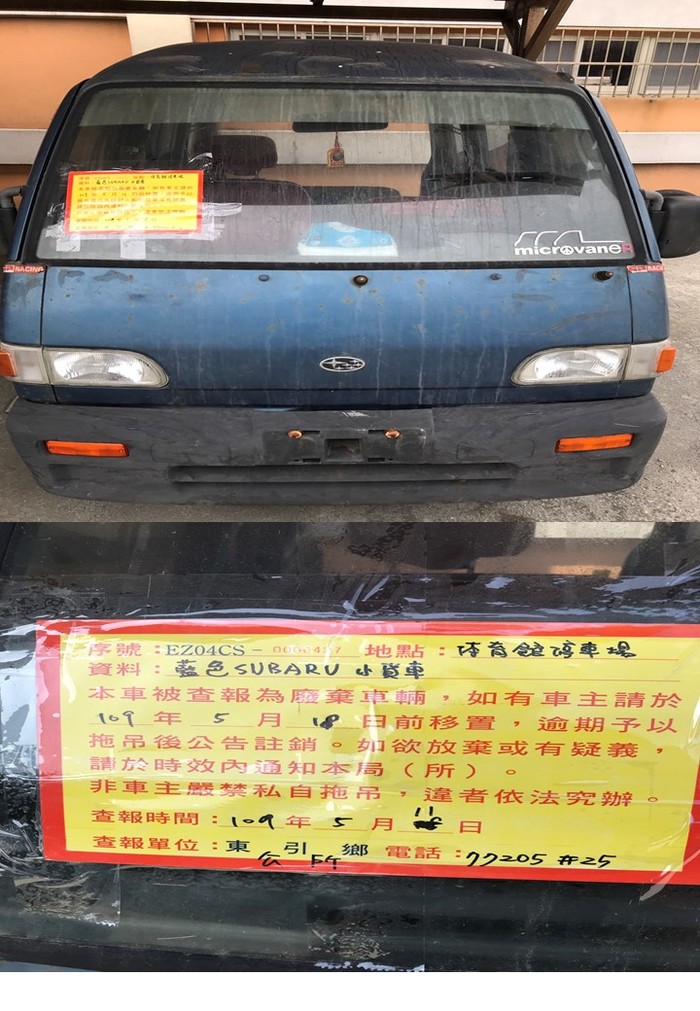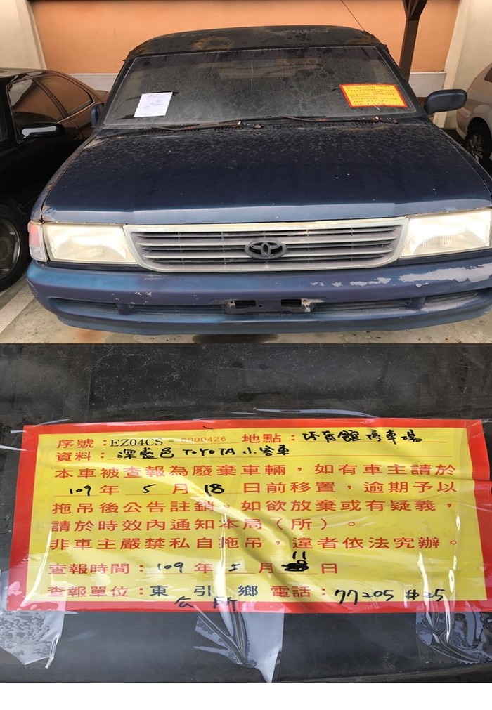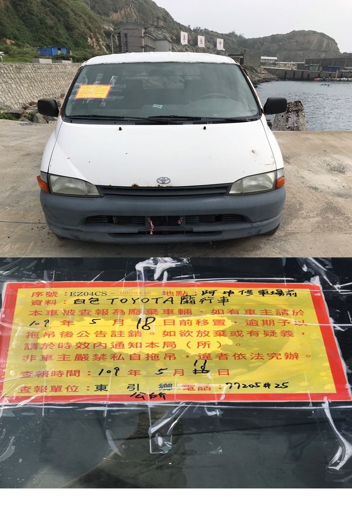 東引鄉公所張貼查報廢棄車輛乙批