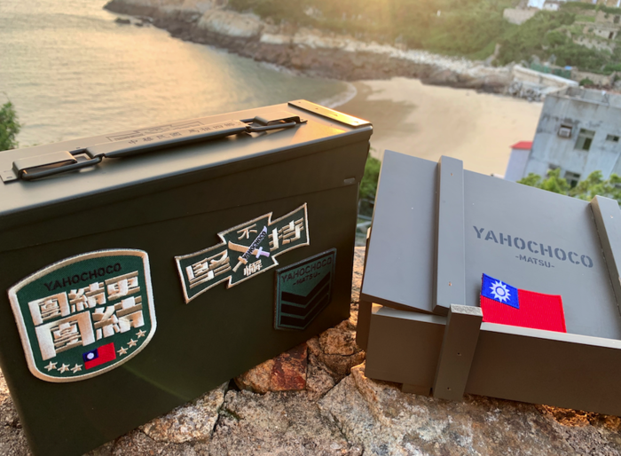 「戰地全系列巧克力禮盒」及「單片造型巧克力」是與知名手工巧克力商合作,以高品質的原料、精緻純熟的手工聞名。延續沐光YAHOCHOCO既有的系列商品,本次推出「毋忘在莒」戰地標語、「隊徽」象徵戰時部隊堅實精神、「媽祖」信仰文化等系列巧克力,除了可單項購買、立即品嘗外,沐光的巧克力禮盒設計成彈藥箱形式,一整箱售價2200元,獨樹一格又精美堅固。另外,前50名購買限量鐵製彈藥箱禮盒組的民眾,還可享有免費客訂鐳射服務,更是不容錯過的一大亮點!