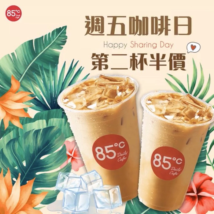 85度C週五咖啡第二杯半價優惠