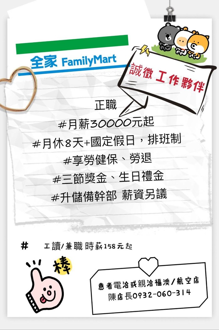南竿全家便利商店「徵夥伴」