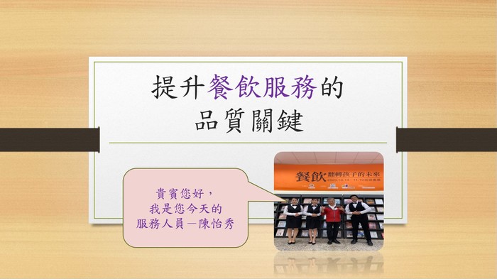 11/18 餐飲服務品質提升課程 --閱讀人次 : 832 餐飲業百家爭鳴,除了東西好吃,「感動服務」更是讓消費者一再造訪的重要因素