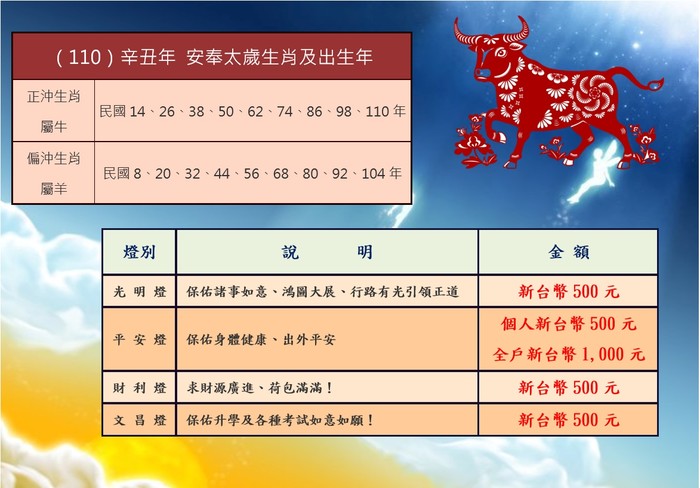 2021辛丑年點燈祈福開放登記