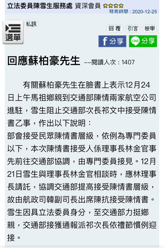陳雪生辦公室的聲明:(≧ω≦)/