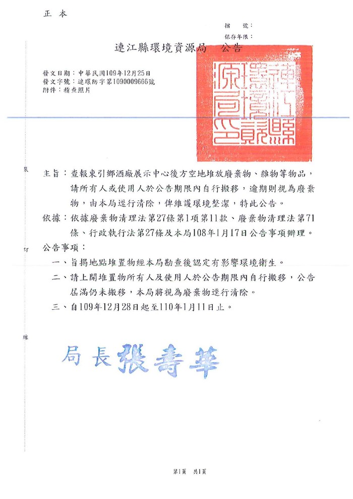 查報東引鄉廢棄物一批