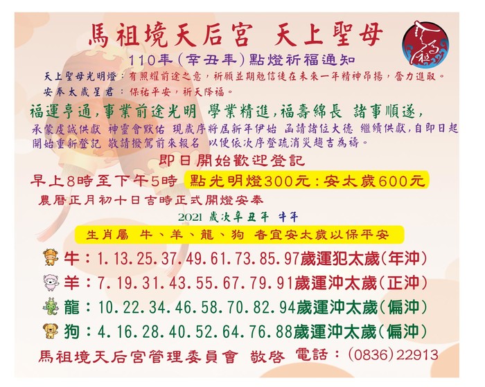 馬祖境天后宮110年(辛丑年)點燈祈福