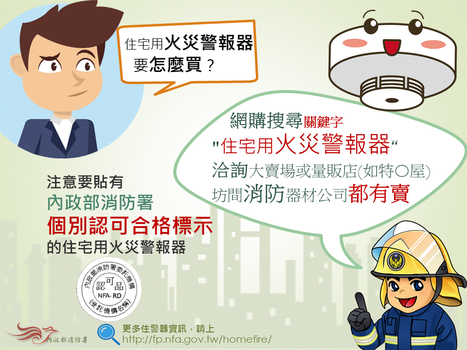 在購買住宅用火災警報器之前,要注意產品是否張貼內政部核准之登錄機構個別認可合格標示。