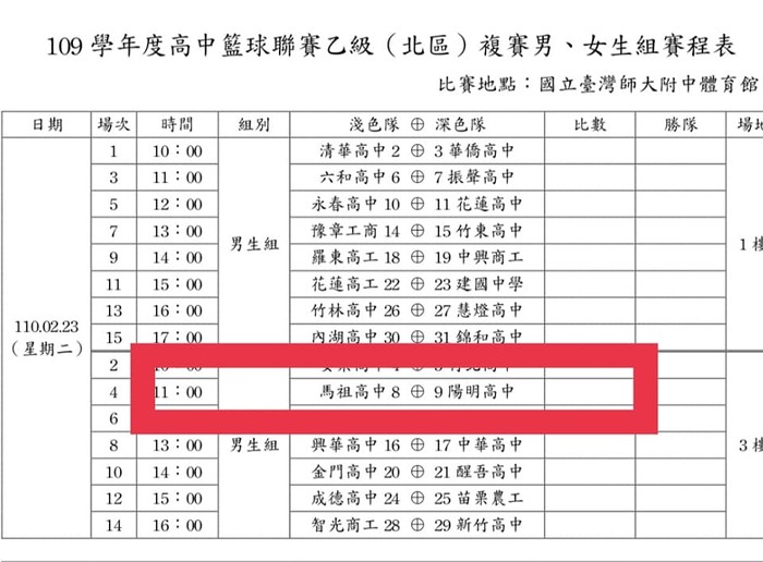 2/23馬高參加高中籃球聯賽乙級複賽