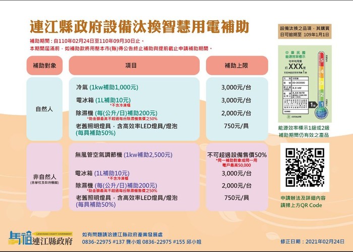連江縣設備汰換與智慧用電補助款開跑囉 --閱讀人次 : 1515 【申請補助期間】: