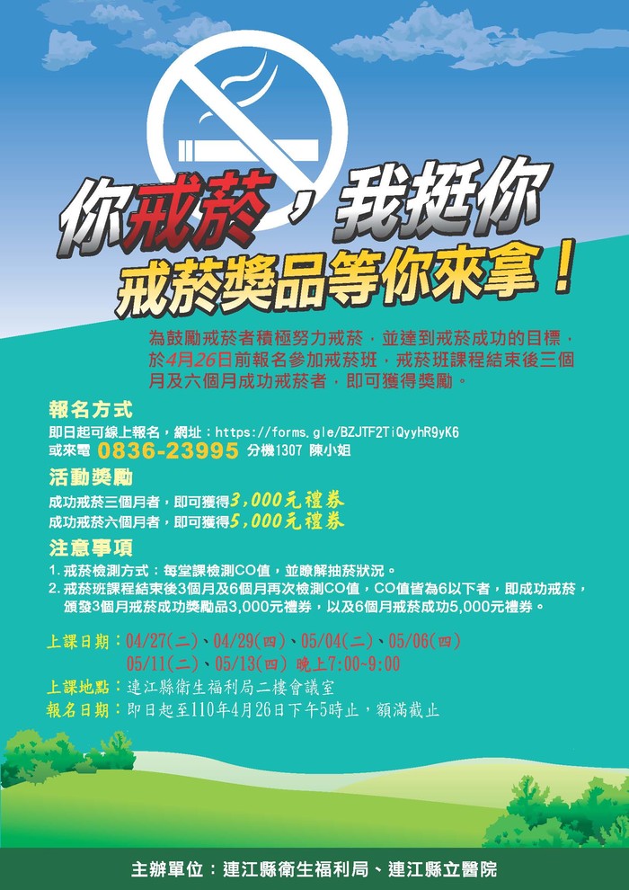 110年連江縣立醫院戒菸班 招生中! --閱讀人次 : 812 你戒菸,我挺你