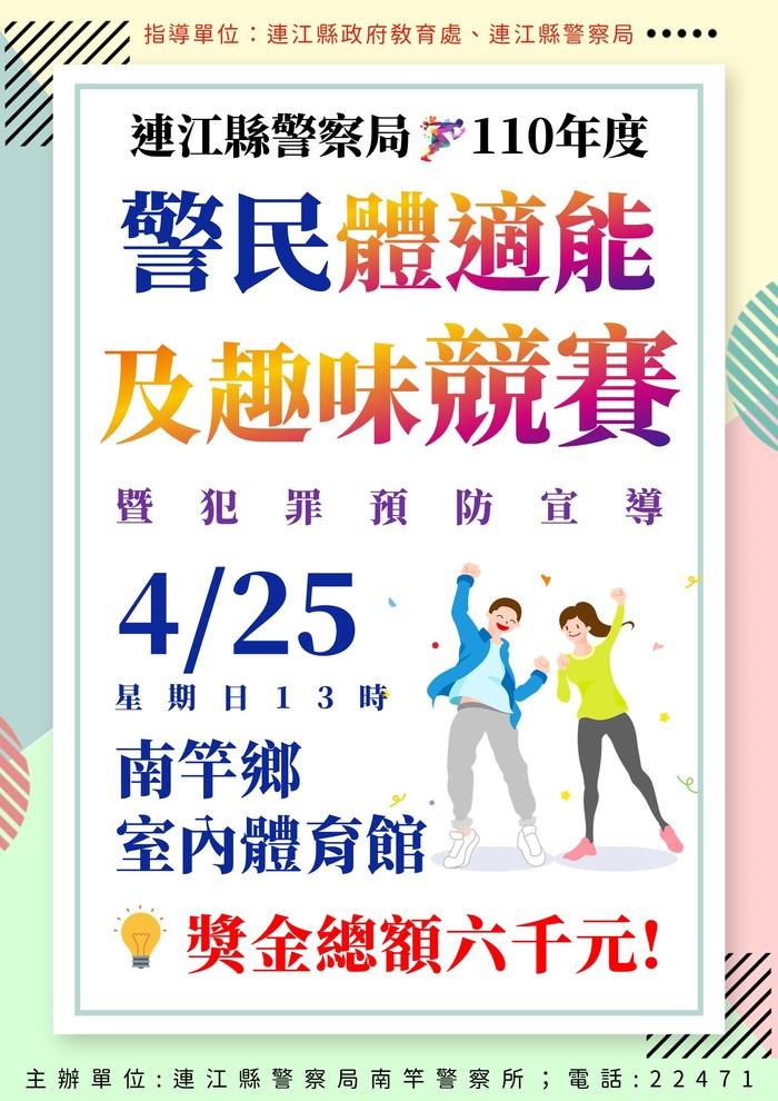 連江縣警察局110年度警民體適能及趣味競賽暨犯罪預防宣導,活動開放報名!