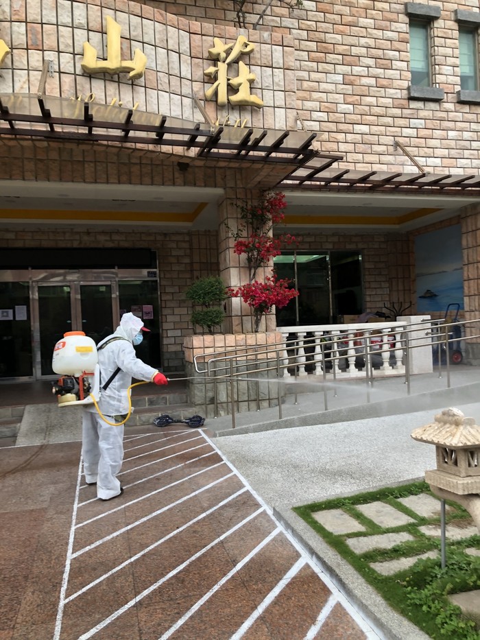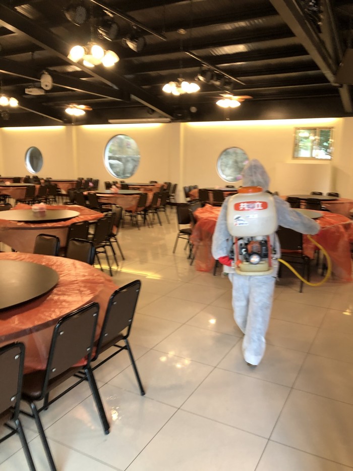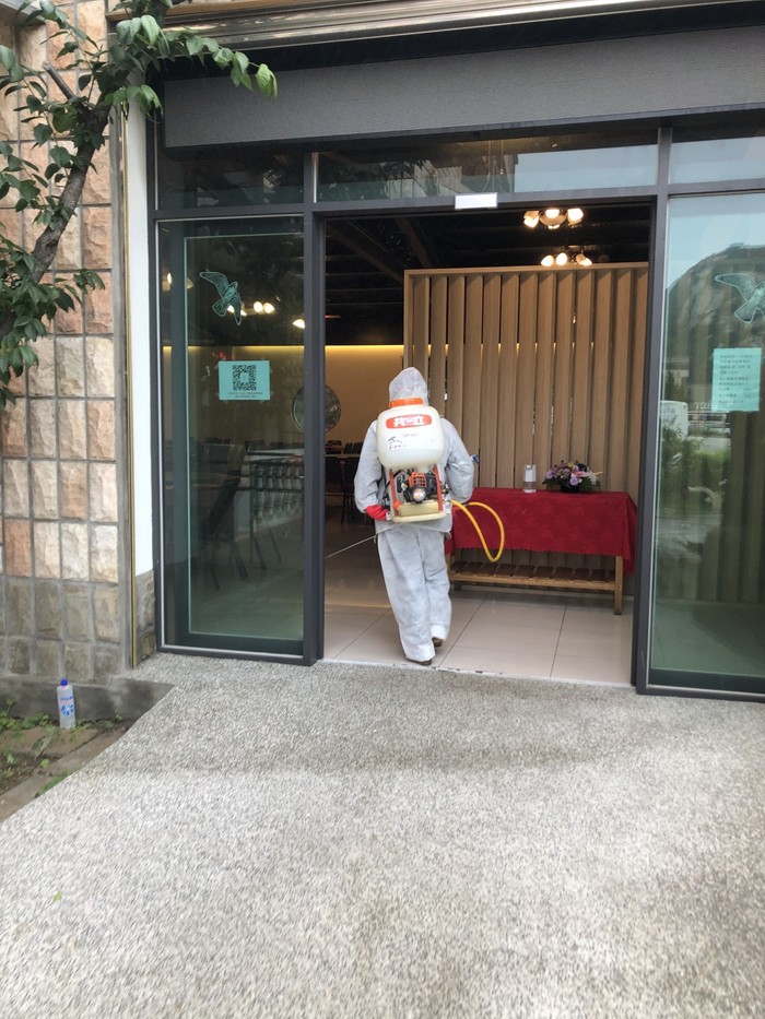 在此波疫情升溫之際,本公司所有同仁皆全程配戴口罩,餐廳工作人員佩戴口罩及手套,並使用酒精及漂白水進行環境消毒。