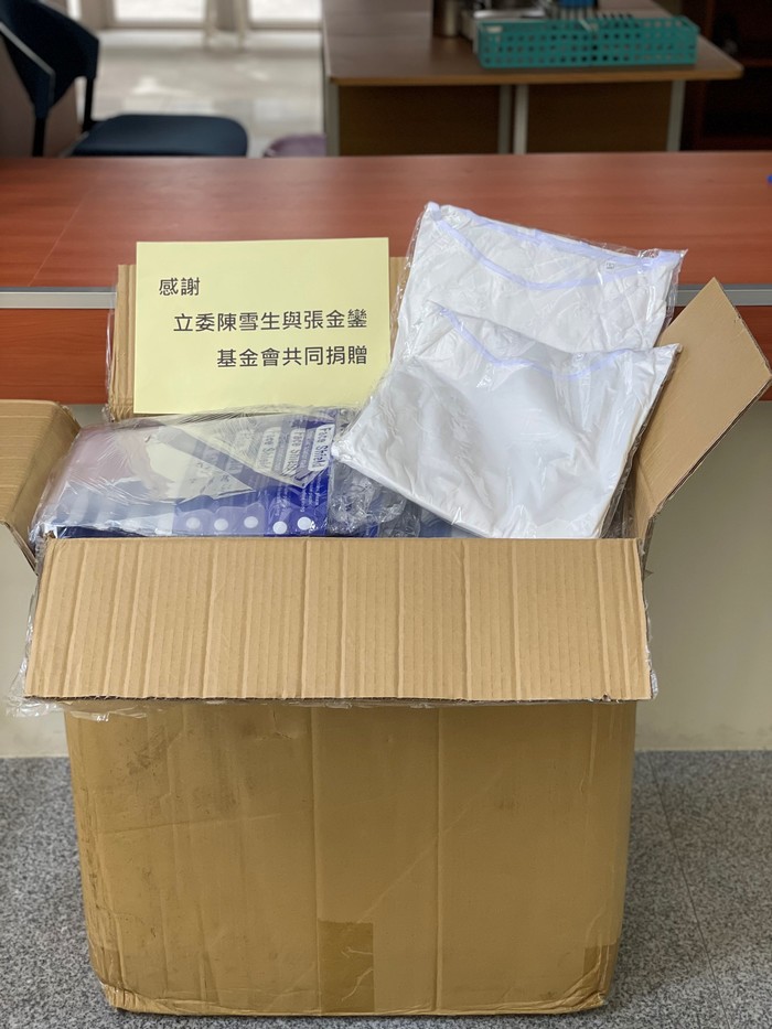 感謝立委陳雪生及張金鑾基金會大力支持地方防疫工作贈送物資