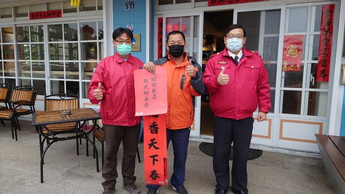新春年春節在即,連江縣消防局於26日舉辦年節用火用電安全宣導,由局長曹典鈺率局內內外勤同仁,會同議員陳書建,曹爾章,林明揚至轄內各村向鄉親宣導防災宣導,遇到未裝設住宅煙霧偵測器的民家還主動免費安裝,並致贈春聯,貼門上還兼具宣導效果,普及民眾心中。