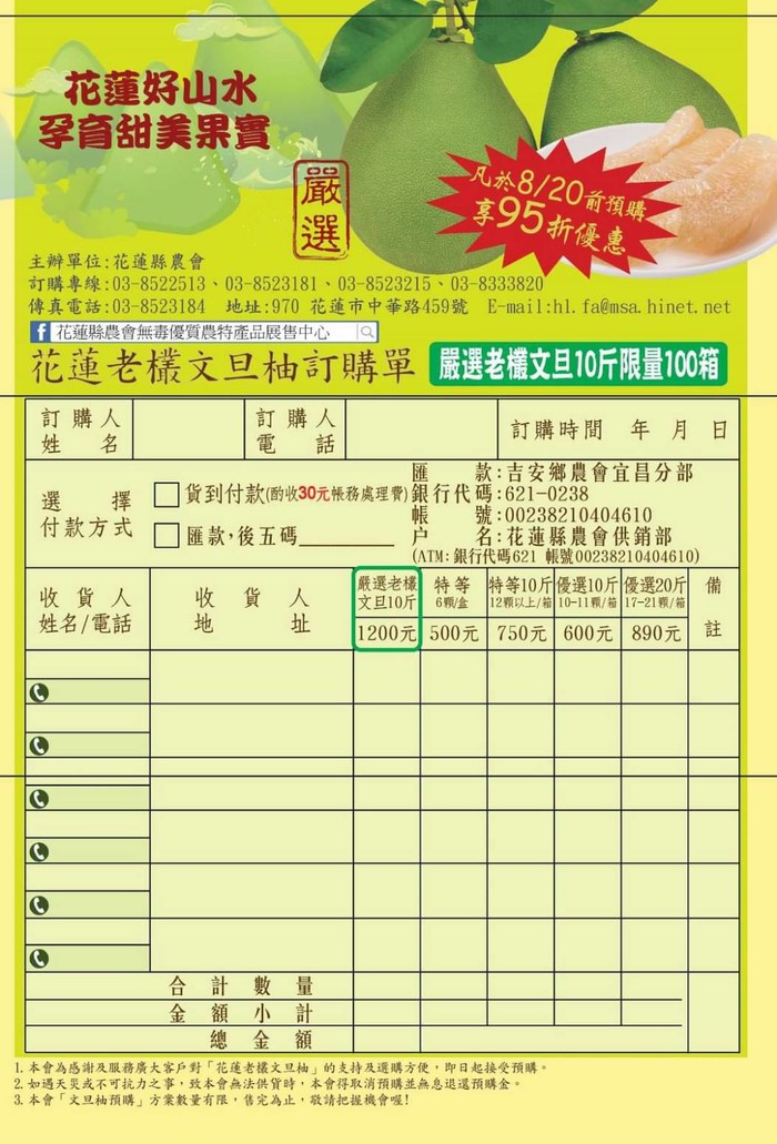 協助推廣花蓮地區老欉文旦柚,為台灣農業盡一份心力!
