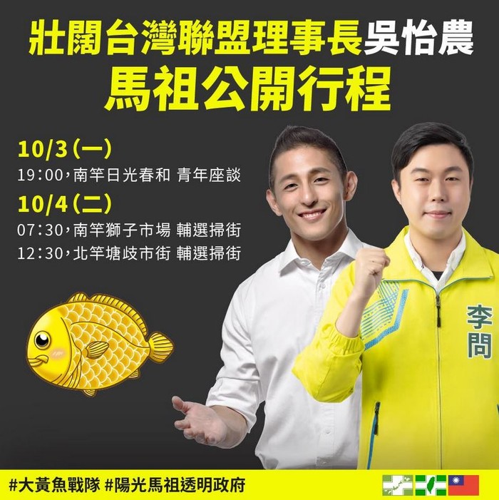 我們很高興邀請到吳怡農來到馬祖,為我們加油打氣。歡迎所有的鄉親朋友共同來參加,我們一起讓馬祖變得越來越好!