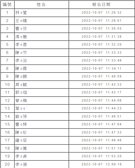 以下為報名入取名單,若臨時不克出席,請務必主動通知承辦人,把機會讓給需要的人