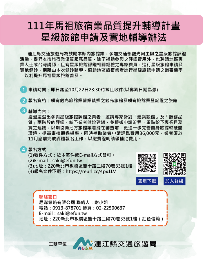 111年馬祖旅宿業品質提升輔導計畫