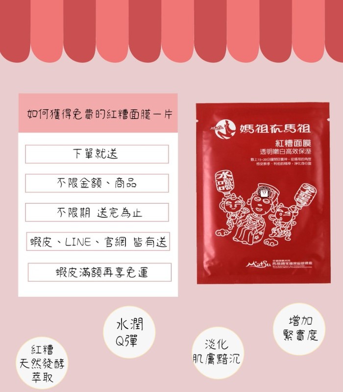 蝦皮、官網、LINE上做訂購就送紅糟面膜一片 ~~