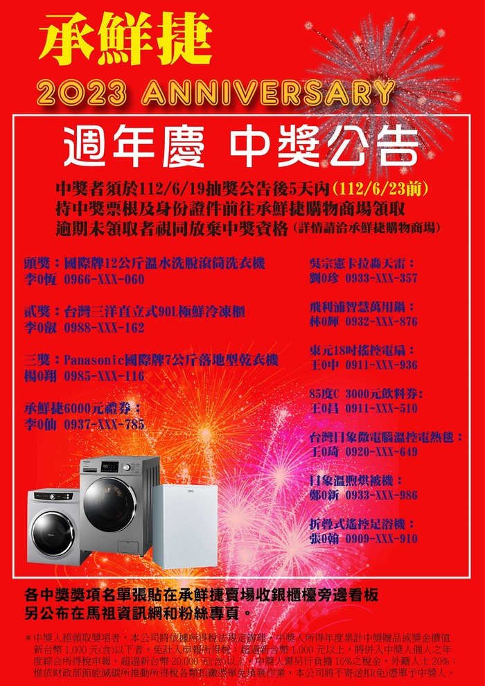 2023承鮮捷週年慶得獎名單公告