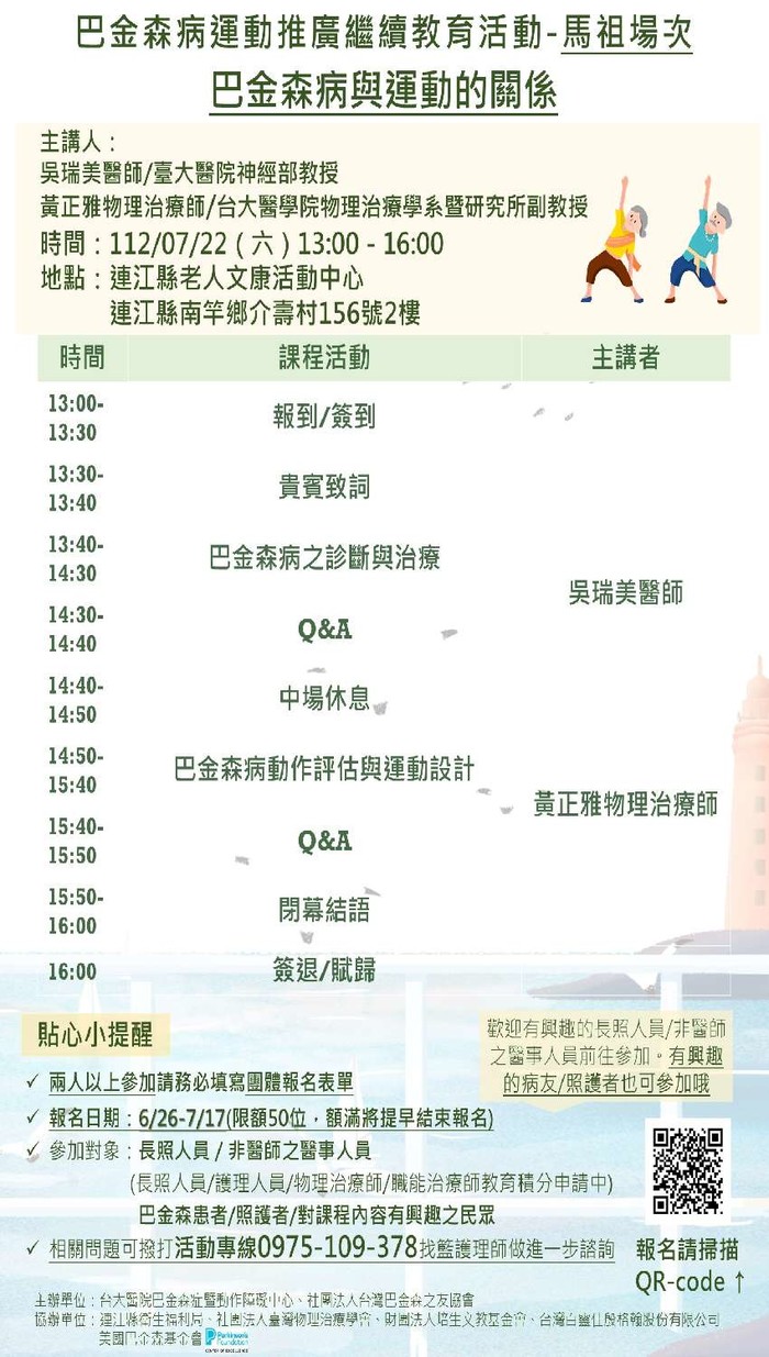 7/22 巴金森病運動推廣繼續教育活動 --閱讀人次 : 755 【巴金森病與運動的關係】