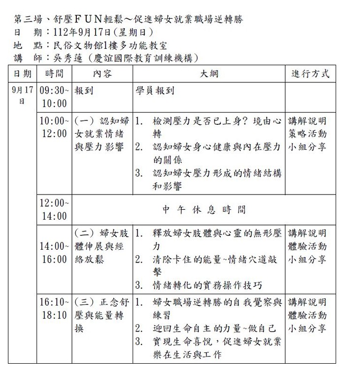 9月17日女性舒壓FUN輕鬆課程