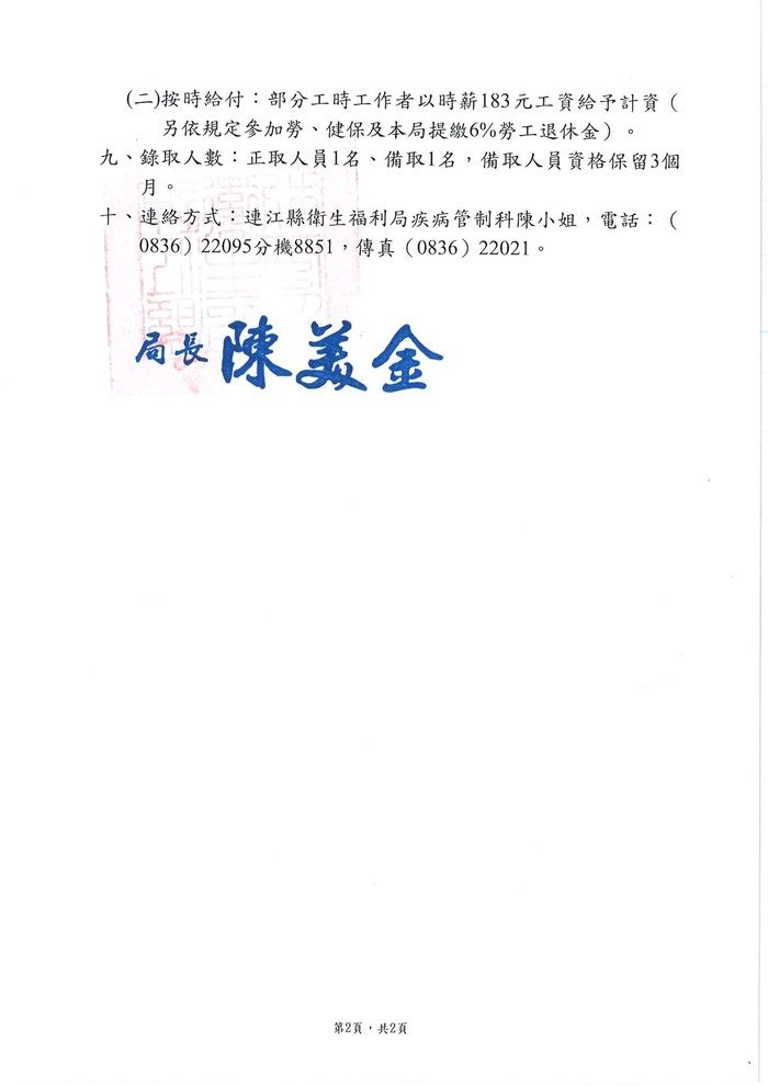 聯絡方式:(0836)22095轉8851陳小姐