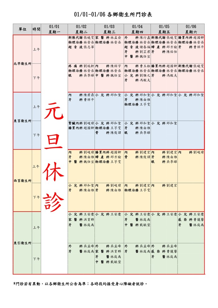 本週1/6北竿衛生所原排定之牙科馮毅夫醫師改為曹祥平醫師,造成不便,敬請見諒。