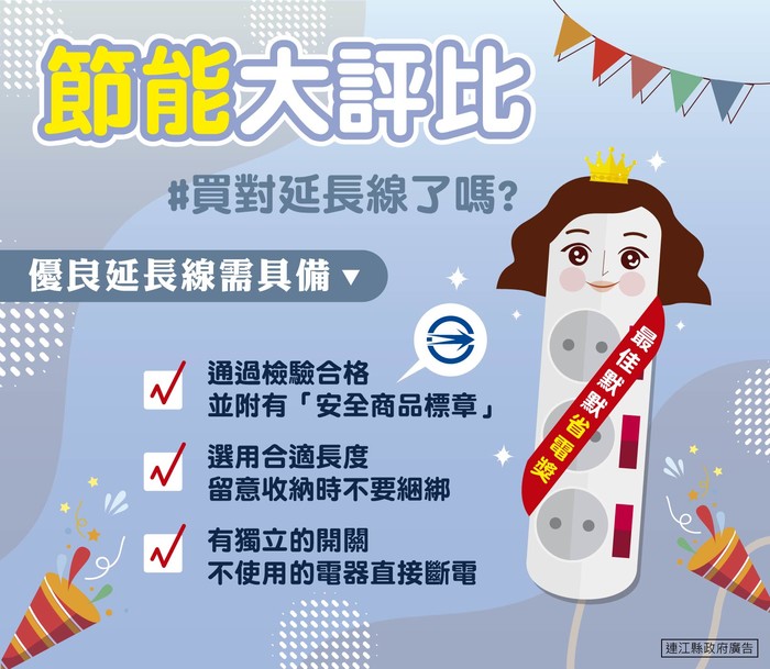 買對延長線了嗎 --閱讀人次 : 724 年底節能大評比,恭喜延長線小姐連續三年榮獲最佳默默省電獎‼️