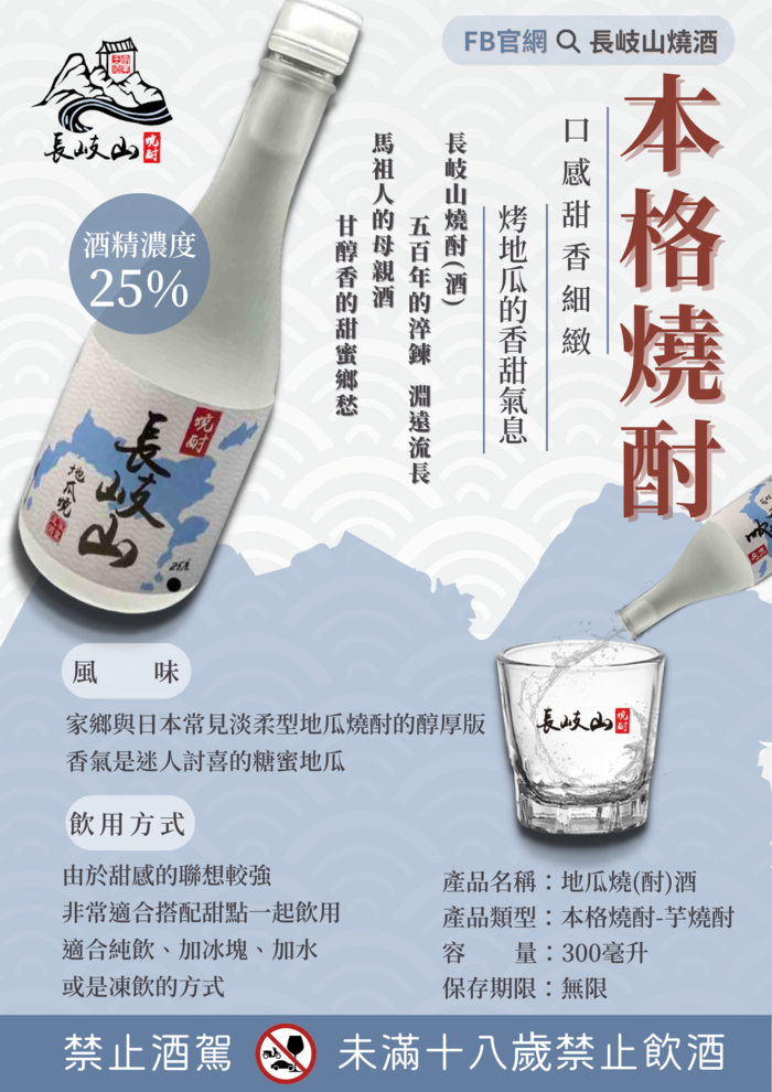 長岐山地貧,明清初期先民只能以地瓜為基底釀酒,沒想味道甘美,於是橫空出世了特有的"長岐山燒酒"。芳香了數百年的地瓜燒酒,才是唯一真正的馬祖家鄉酒!