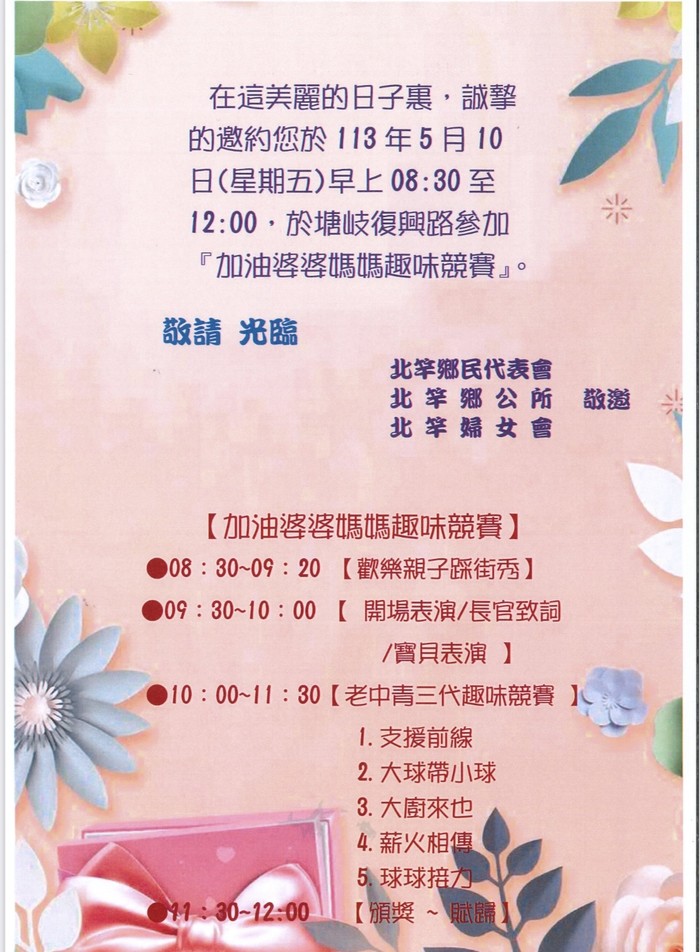 快來報名參加5/10『加油!婆婆媽媽趣味競賽』吧!一起來動一動!