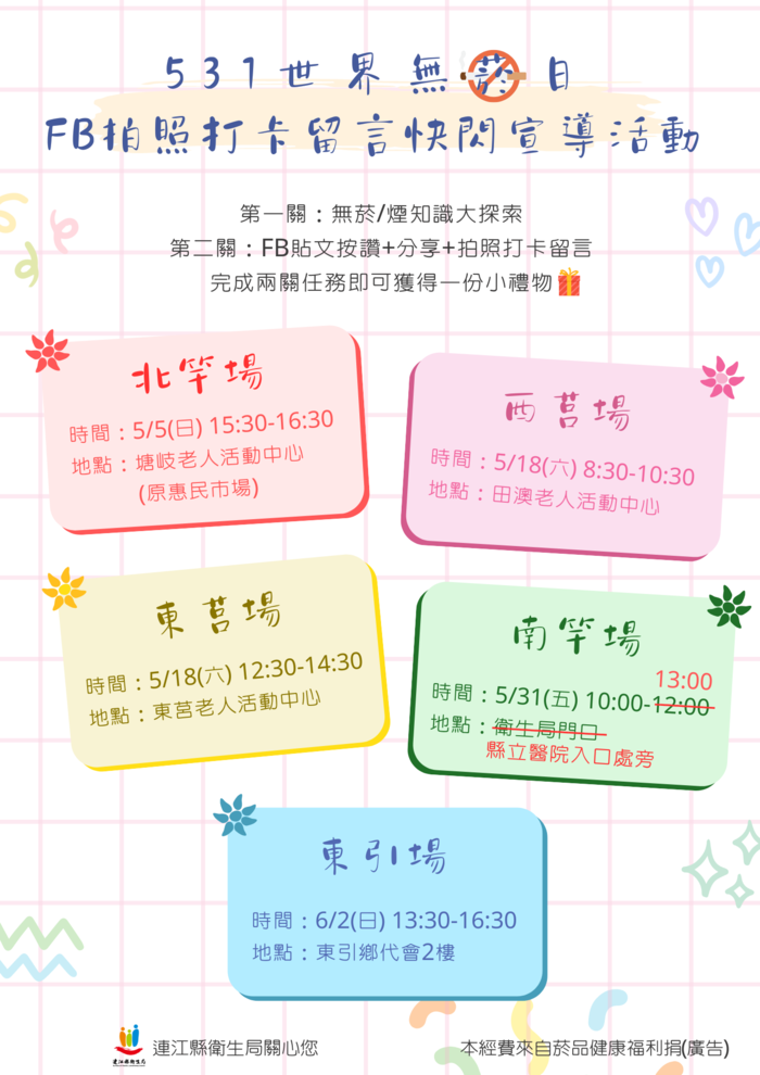 531世界無菸日打卡活動南竿場異動公告