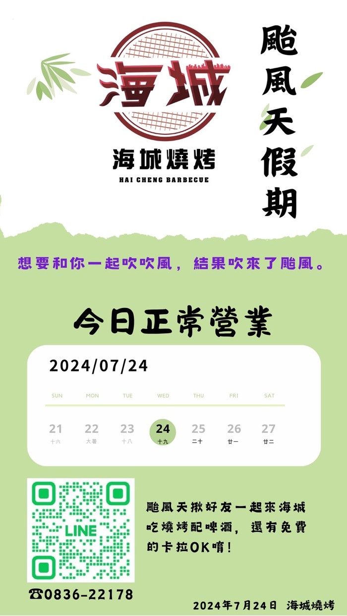 海城7/24正常營業