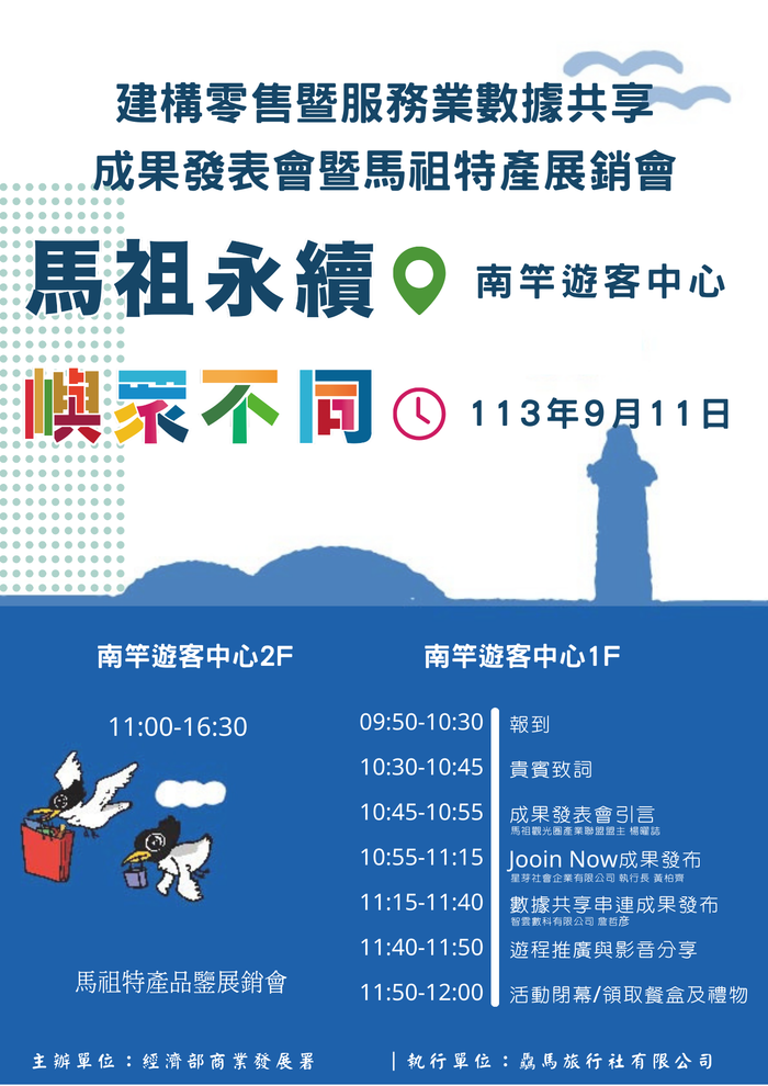 馬祖永續嶼眾不同數據共享成果發表會 --閱讀人次 : 443 觀光圈產業聯盟數據共享推動小組將於9/11 號展示數據共享推動的成果