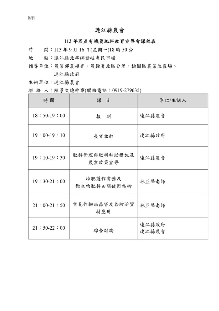 輔導單位 : 農業部農糧署、農糧署北區分署、桃園區農業改良場、連江縣政府