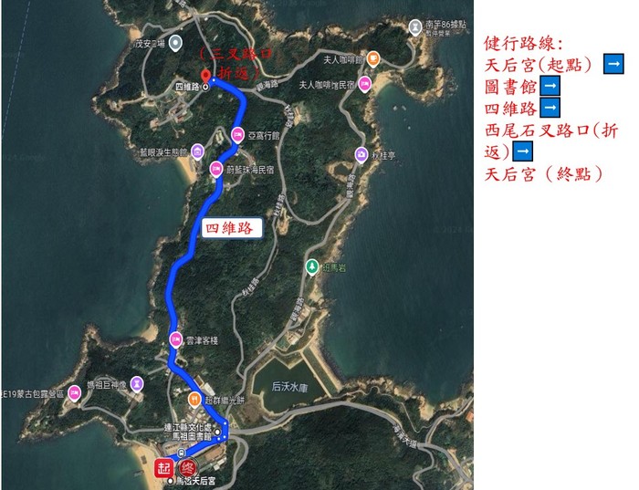 三、 活動時間地點路線:9月29日(週日)上午9點集合,健行路線為:馬港天后宮(起點) → 圖書館 → 四維路 → 西尾石叉路口(折返) → 馬港新街 → 馬港天后宮(終點)