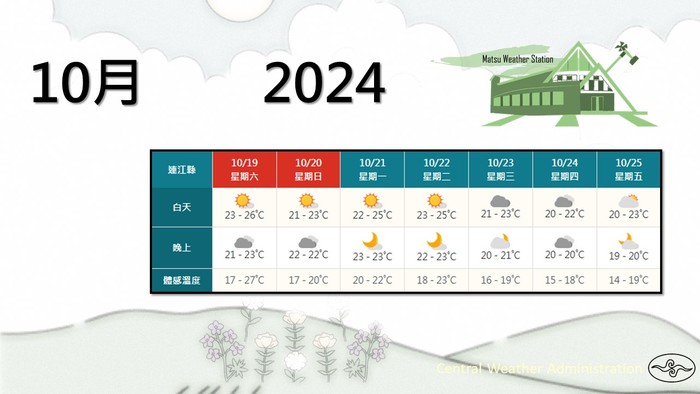 10/19~一周天氣概況~10/25 --閱讀人次 : 1019 可能年紀大了