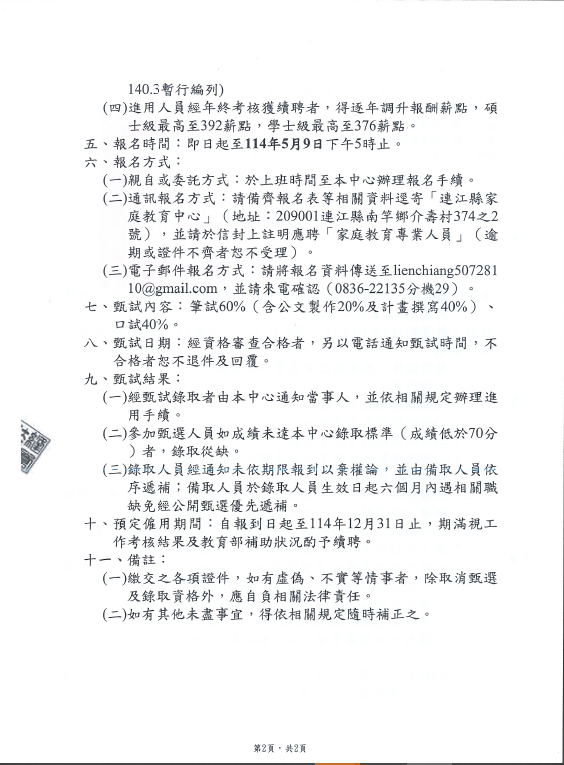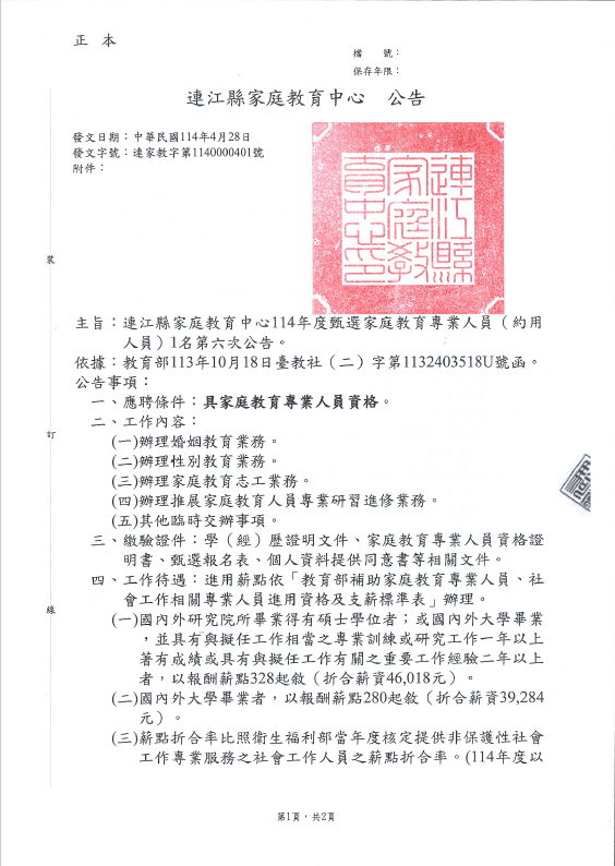 家庭教育中心甄選家庭教育專業人員1名第六次公告