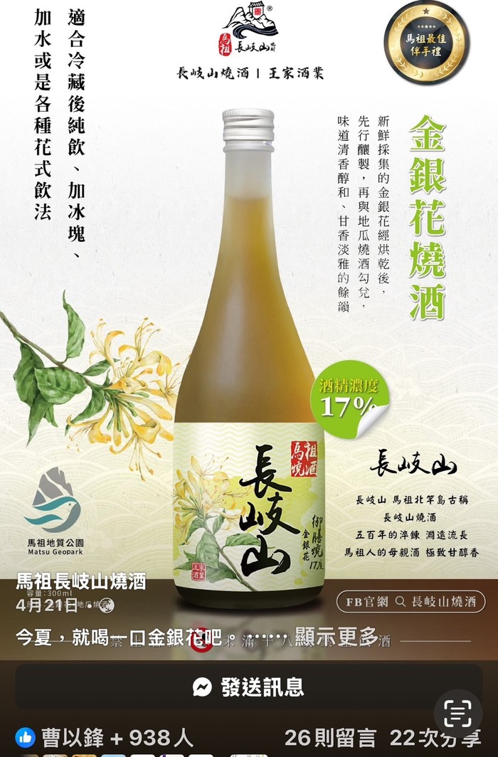 ➡️ Facebook 小編(馬祖長岐山燒酒)