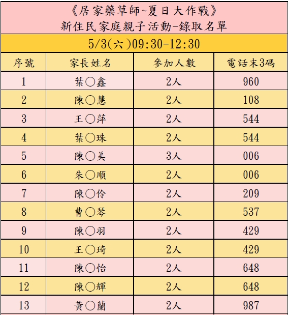 📞連絡電話:連江縣新住民家庭服務中心25022#306陳小姐