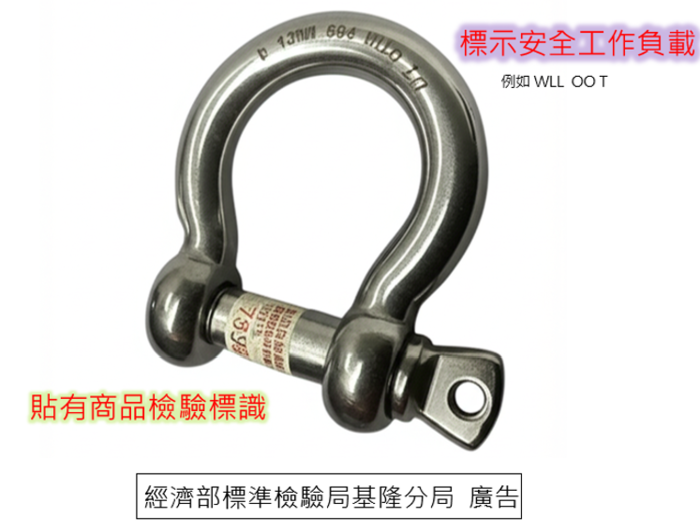 ✧選購時應注意商品本體是否貼有「商品檢驗標識」(圖例:如相關照片),鉤環上是否清楚標示製造廠名稱(或商標),並以鐫印或打印方式,標示安全工作負載(WLL),依據需求選用適當的規格。