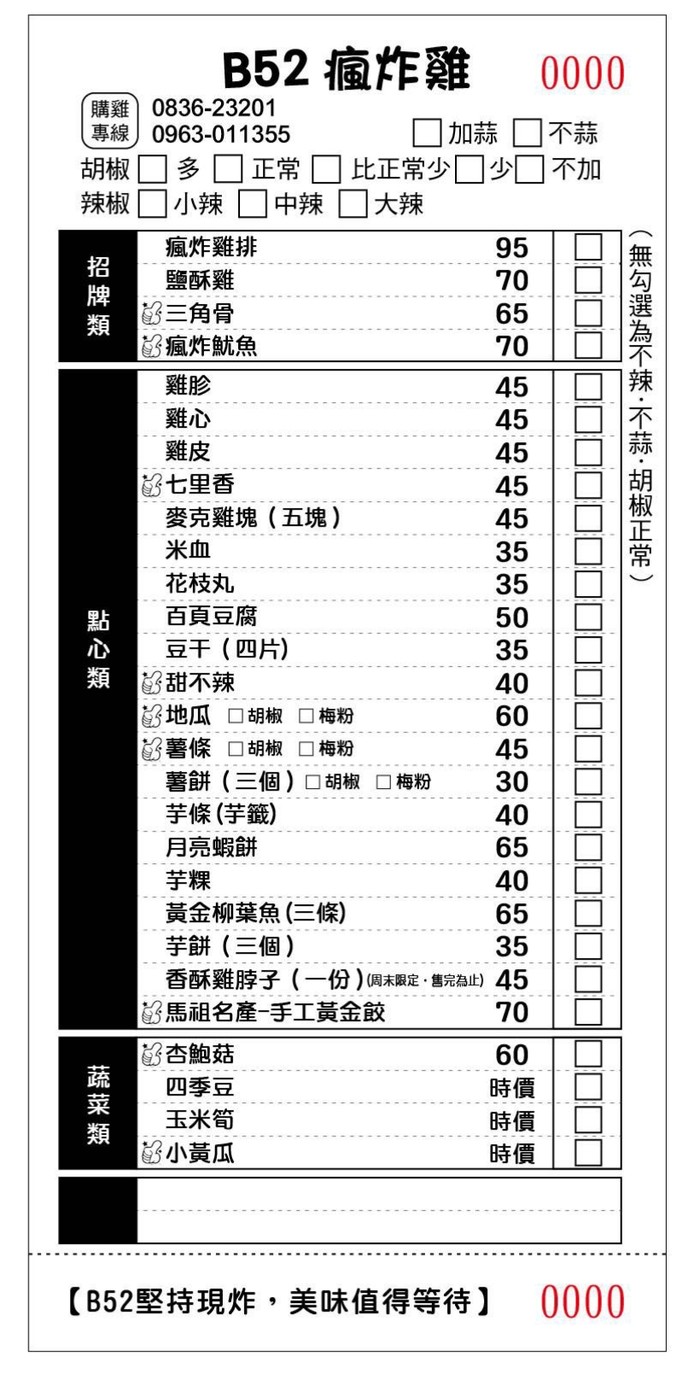 B52瘋炸雞價格調整公告