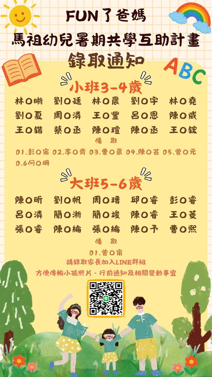 馬祖幼兒暑期共學互助計畫 #錄取通知