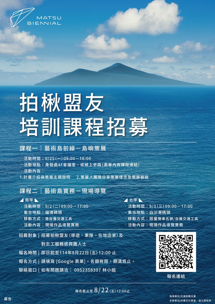 第二場「藝術島實務-現場導覽」則將於展前進行南竿及北竿兩場實地導覽,