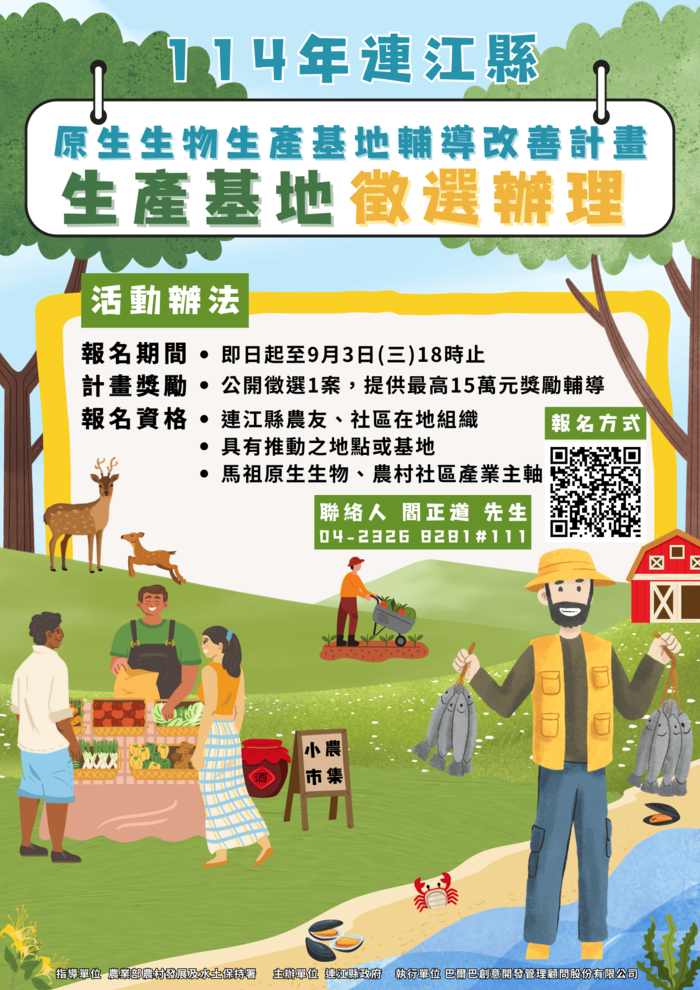 其他未盡資訊請參閱「114年連江縣輔導原生生物種植(或養殖)之生產條件優化徵選辦法」所示