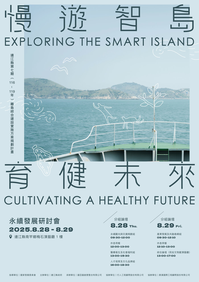 為因應馬祖地區長遠發展需求,並落實「永續島嶼」施政理念,連江縣政府將於 8月28日至29日 於南竿梅石演藝廳與連江縣民俗文物館舉辦「第七期離島綜合建設──永續發展研討會」。本次研討會特別邀請台灣本島各領域具專業知識的學者專家,與縣府各局處首長及地方團體進行深度交流,共同凝聚未來馬祖的發展願景。